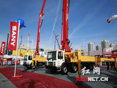 三一“紅色之星”工程機(jī)械產(chǎn)品吸引了觀眾的眼球三一展位前觀眾川流不息三一針對(duì)美國(guó)市場(chǎng)研制的泵車(chē)紅網(wǎng)3月30日...