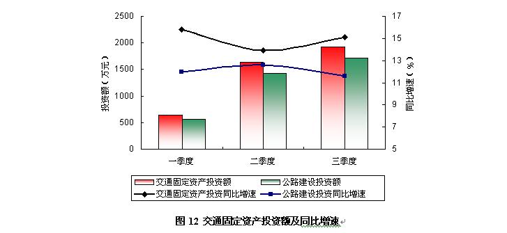 今年以來(lái),交通基礎(chǔ)設(shè)施建設(shè)重點(diǎn)圍繞高速公路、農(nóng)村公路、沿海港口碼頭泊位以及內(nèi)河航道整治、擴(kuò)能等建設(shè)項(xiàng)目穩(wěn)步推進(jìn)。1-9月份,完成交通固定資產(chǎn)投資4209.0億元,同比增長(zhǎng)14.7%,受土地和信貸等宏觀調(diào)控政策的影響,投資增速回落16個(gè)百分點(diǎn)。其中,公路建設(shè)完成投資3710.5億元,沿海港口建設(shè)和內(nèi)河建設(shè)分別完成319.5億元和73.4億元,同比分別增長(zhǎng)12.1%、67.5%和60.1%。分地區(qū)看,東、西部地區(qū)投資額增長(zhǎng)較快,東、中、西部地區(qū)分別完成投資2040.7億元、1303.9億元和864.4億元,分別同比增長(zhǎng)18.9%、9.2%和14.0%。分季度看,交通投資呈平穩(wěn)增長(zhǎng)態(tài)勢(shì)。