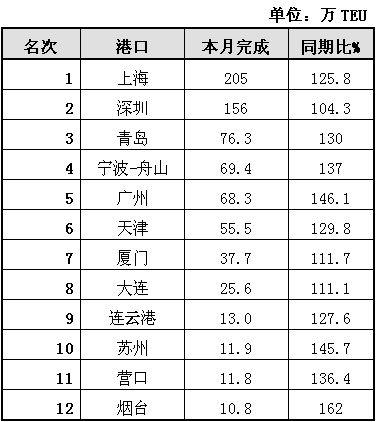 全國規(guī)模以上港口集裝箱吞吐量前十二名