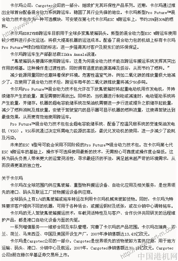 卡爾瑪推出全球首臺混合動力跨運(yùn)車