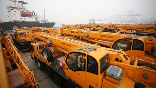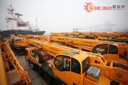 徐工起重機(jī)分別在上海,天津等港口啟運(yùn),發(fā)往歐洲、俄羅斯、中東、巴西等地。截至今年六月份,中國起重機(jī)生產(chǎn)龍頭企業(yè)徐工重型有限公司的起重機(jī)產(chǎn)品已經(jīng)占據(jù)海外市場近40%的份額,實(shí)現(xiàn)了與國際同行三分天下的格局,并成功躋身國際一線品牌陣營。