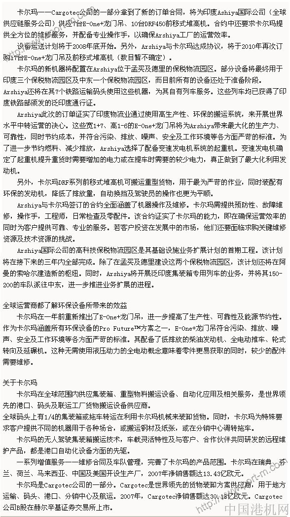 Arshiya公司訂購卡爾瑪E-One+龍門吊及集裝箱正面吊