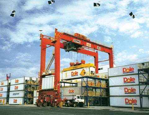 上海振華港口機械(集團(tuán))股份有限公司(ZPMC)是世界知名集裝箱起重機制造商,輪胎式集裝箱龍門起重機(RTG)是其主要產(chǎn)品,它不僅適用于集裝箱碼頭前沿的堆場,也適用于后方中轉(zhuǎn)站的集裝箱專用堆場。迄今為止,按訂單統(tǒng)計,ZPMC已向市場提供輪胎式集裝箱龍門起重機1825臺,產(chǎn)品除中國各大港口外,也遍布世界主要國家和臺灣、香港地區(qū)的碼頭。如在美國東西海岸各大港口、加拿大、英國、西班牙、巴西、吉布提、牙買加、哥倫比亞、阿曼、沙特、黎巴嫩、埃及、肯尼亞、蘇丹、加納、緬甸、委內(nèi)瑞拉、泰國、墨西哥、多米尼加、印度、約旦、韓國、巴基斯坦和中國香港、臺灣地區(qū)以及國內(nèi)各大港口,均有ZPMC的RTG在高效率地工作。