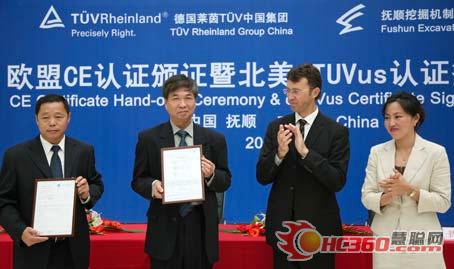 撫挖公司,頒發(fā)首批液壓履帶起重機(jī)產(chǎn)品CE證書和第二批履帶起重機(jī)CE及北美cTUVus認(rèn)證的簽約。