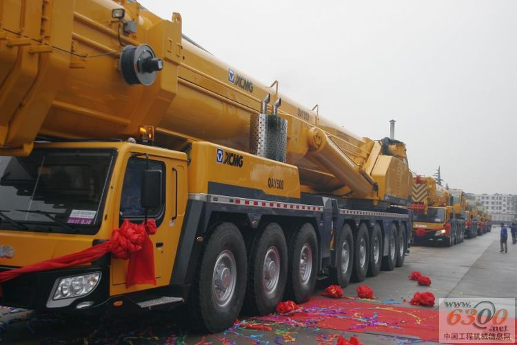 在發(fā)車儀式現(xiàn)場,徐工車隊負責人、徐州重型市場部部長張勇向記者介紹,此次徐工集團挑選出了近年研發(fā)的代表國內(nèi)外行業(yè)最高水平、最受廣大用戶歡迎的41臺(套)新產(chǎn)品,將與跨國公司同臺競技,一展行業(yè)龍頭風采。包括QAY400、QAY500全路面起重機、130K汽車起重機、QUY650履帶起重機、68米登高平臺消防車、56米混凝土泵車以及壓路機、裝載機、多功能攤鋪機、挖掘機等。其中,最引人注目的就是下圖中的QAY500全路面起重機。