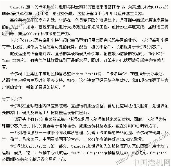 阿曼塞拉萊港啟用卡爾瑪碼頭牽引車車隊(duì)