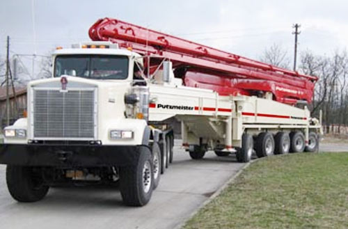2008年9月23日,普茨邁斯特(上海)有限公司在北京舉行M70-5臂架泵車(chē)新品發(fā)布會(huì),談及70米泵車(chē)的研發(fā)初衷,普茨邁斯特技術(shù)總監(jiān)Mr.MRTINEMAYER先生向慧聰工程機(jī)械網(wǎng)記者表示,“研發(fā)M70-5泵車(chē)首先是我們來(lái)自市場(chǎng)的需求,普茨邁斯特始終秉承TOPINMIND,TOPINCHOICE(做客戶心目中的第一品牌,客戶選擇設(shè)備時(shí)的首選品牌)。M70-5泵車(chē)是我們根據(jù)客戶的需求,和客戶共同研究開(kāi)發(fā)的。這一理念是普茨邁斯特多年來(lái)勤奮的著眼于持續(xù)改進(jìn)產(chǎn)品,不斷創(chuàng)新的精神動(dòng)力?!?BR> 普茨邁斯特公司將M70-5泵車(chē)采用半掛車(chē)作為底盤(pán),使得該泵車(chē)具有良好的移動(dòng)性,其轉(zhuǎn)彎半徑甚至小于18米,完全能適應(yīng)公路及工地行駛。RZ折疊型5節(jié)臂布料桿能在53米高度形成17米的水平布料半徑,大大超出任何其它泵車(chē)的布料范圍。
