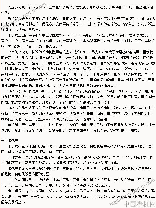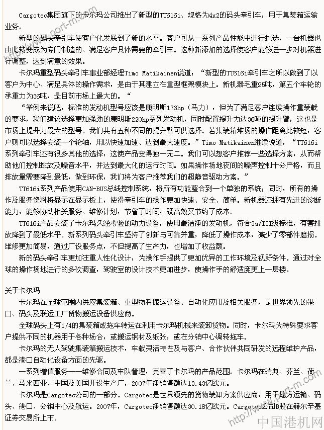 卡爾瑪新型碼頭牽引車提高了客戶化水平