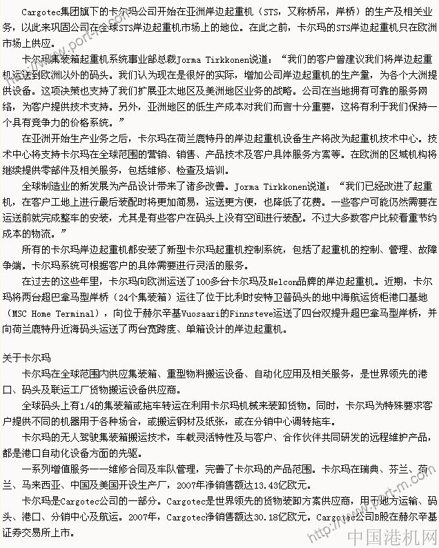 卡爾瑪進(jìn)軍亞洲STS岸邊起重機(jī)市場