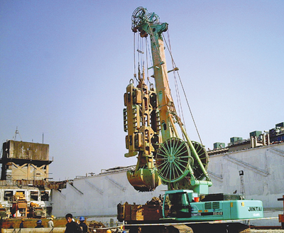 金泰工程機械有限公司(以下簡稱上海金泰)推出的SG40A液壓連續(xù)墻抓斗在武漢地鐵二號線長江隧道工程中大顯身手。該設(shè)備配置的抓斗槽寬1500毫米、容積2100升,是目前國內(nèi)最大的抓斗;在施工中更是以13小時順利完成了48米深、1.5米寬的開挖作業(yè),創(chuàng)造了地下連續(xù)墻施工中成槽寬度、施工工效等方面新紀(jì)錄。