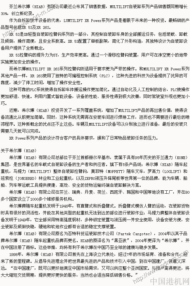 芬蘭HIAB系列產(chǎn)品銷售創(chuàng)紀(jì)錄