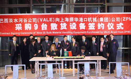 上海振華港口機(jī)械(集團(tuán))股份有限公司(下稱(chēng)振華港機(jī))與巴西淡水河谷公司的簽約儀式