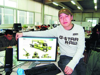 “安全問(wèn)題是起重機(jī)首要考慮的問(wèn)題?!瘪R超民指著傳統(tǒng)的起重機(jī)的模型,“傳統(tǒng)的起重機(jī)配重都是在吊臂的后部,而我這款設(shè)計(jì)就把配重裝置在底盤(pán)上,這樣既降低了重心,利于機(jī)器的穩(wěn)定,而且配重還可以根據(jù)所吊物體的重量方便地進(jìn)行增減?!痹u(píng)委表示,正因?yàn)檫@個(gè)設(shè)計(jì)的實(shí)用性,基于現(xiàn)在的技術(shù)特點(diǎn)能夠提出改進(jìn)創(chuàng)新的方法,并且滲透了人文關(guān)懷,使得這個(gè)作品力挫群雄,獲得了金獎(jiǎng)。