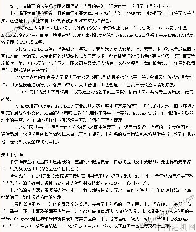 卡爾瑪亞太有限公司奪得APBEST獎(jiǎng)