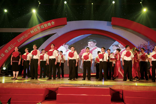 相比晚會(huì)上的娛樂(lè)明星們,當(dāng)晚最耀眼的明星則是胸帶大紅花、笑容燦爛的三一研發(fā)工程師們。