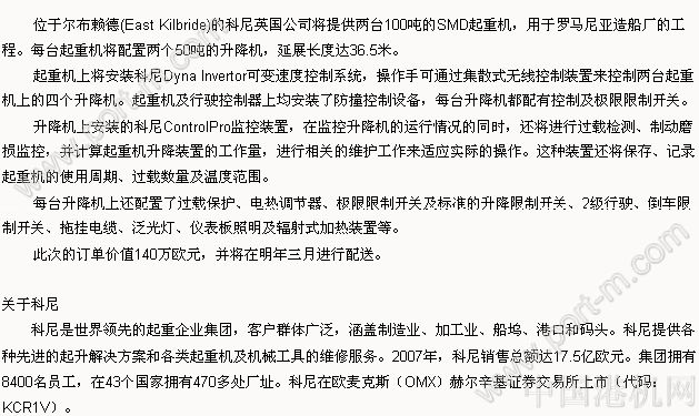 科尼為羅馬尼亞造船廠提供SMD系列起重機(jī)