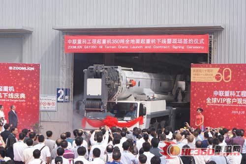 9月28日,中聯(lián)重科工程起重機(jī)出新品,350噸全地面起重機(jī)成功下線
