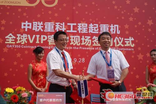 350噸全地面起重機(jī)中聯(lián)重科與全球VIP客戶現(xiàn)場簽約儀式隆重舉行