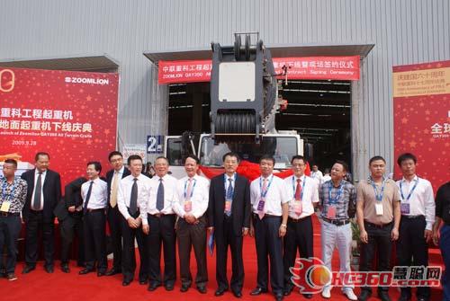 中聯(lián)重科工程起重機(jī)350噸全地面起重機(jī)下線慶典,中聯(lián)重科代表和全球VIP客戶代表合影