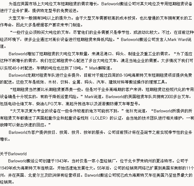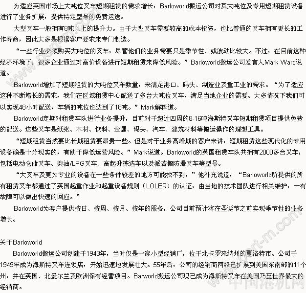 Barloworld:短期租賃需求增大