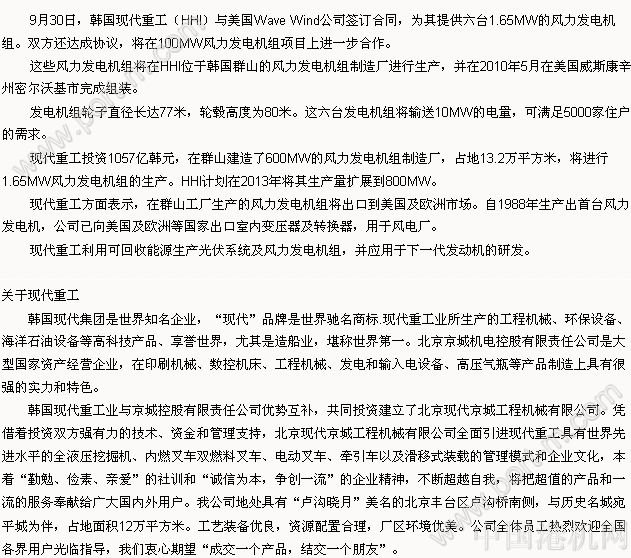 現(xiàn)代重工進(jìn)軍美國(guó)風(fēng)力發(fā)電機(jī)市場(chǎng)