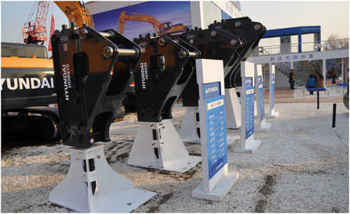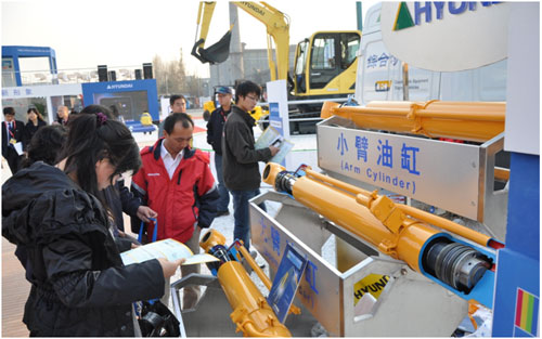 現(xiàn)代此次參展的展品類別非常豐富,有ROBEX-9系列挖掘機11臺、現(xiàn)代叉車5臺、液壓油缸3部、破碎器5臺、選配鏟斗3臺,綜合診斷車1輛。各項產(chǎn)品均以其卓越的表現(xiàn)獲得參觀人員的青睞。