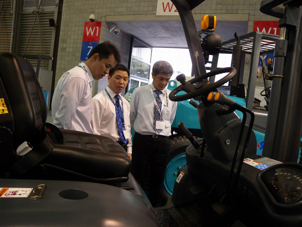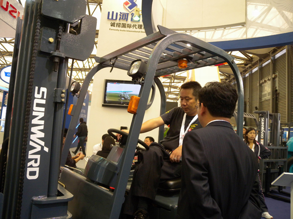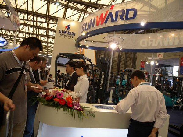 中國叉車行業(yè)的新秀——山河智能,在這次展會重點帶來了全交流電動堆高機(jī)、全交流電動平衡重叉車及其他內(nèi)燃叉車等設(shè)備,并對即將在國內(nèi)展開銷售的滑移裝載機(jī)、靜壓傳動三節(jié)式伸縮臂叉車做了重點推介。在展館現(xiàn)場,山河智能展臺整齊排列著代表國內(nèi)較先進(jìn)水平的山河智能各種藍(lán)色叉車產(chǎn)品,藍(lán)色給人寧靜、穩(wěn)重的印象,這也正象征著山河智能的企業(yè)文化和產(chǎn)品風(fēng)格。展會期間,山河智能推出的全交流電動堆高機(jī)、全交流電動平衡重叉車尤其受到參展客商的矚目,其電動平衡重叉車以其小巧、靚麗的外形和人性化的設(shè)計,不僅贏得了眾多參觀者的青睞,而且現(xiàn)場還有許多觀眾登上駕駛室,親自體驗,感受其良好的性能和操控舒適所帶來的享受;而設(shè)計精良的全交流電動堆高機(jī)更是在展會上就被上海的客戶當(dāng)場訂購。展會期間,前來山河智能展臺洽談的國內(nèi)外客戶絡(luò)繹不絕,對山河智能此次展示的刮目相看,并表達(dá)出濃厚的興趣。