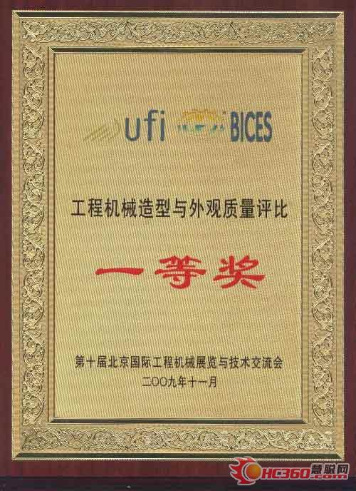 北起多田野獲“工程機(jī)械造型和外觀質(zhì)量評(píng)比”一等獎(jiǎng)證書