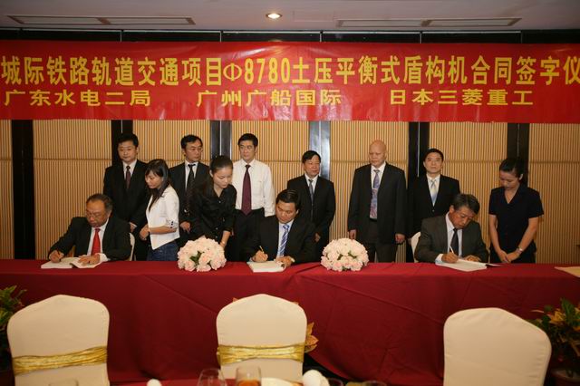 11月2日,公司與廣東省水電二局股份有限公司在新塘太陽(yáng)城酒店簽署了穗莞深城軌項(xiàng)目——4臺(tái)直徑8.78米大型土壓平衡式盾構(gòu)機(jī)采購(gòu)合同。同時(shí),合作雙方還共同與日本三菱重工機(jī)電系統(tǒng)株式會(huì)社簽訂了技術(shù)合作協(xié)議。按照協(xié)議,將由三菱重工負(fù)責(zé)提供該批盾構(gòu)機(jī)項(xiàng)目的關(guān)鍵技術(shù)與進(jìn)口部件。