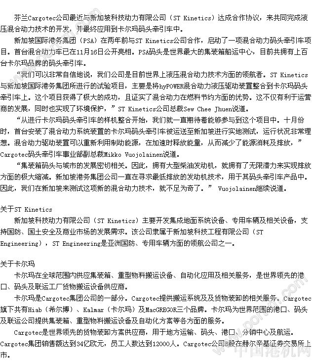 卡爾瑪碼頭牽引車引入液壓混合動力技術(shù)