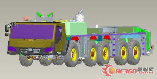 該底盤與第一代全地面起重機(jī)底盤有所不同,其優(yōu)勢是該底盤使用自主研發(fā)的車架專用分析設(shè)計軟件對車架精細(xì)設(shè)計,結(jié)構(gòu)重量比第一代產(chǎn)品減輕10~15%,具有更加優(yōu)化的強(qiáng)度重量比,實現(xiàn)了同等強(qiáng)度的輕量化設(shè)計,使得整體結(jié)構(gòu)更緊湊。