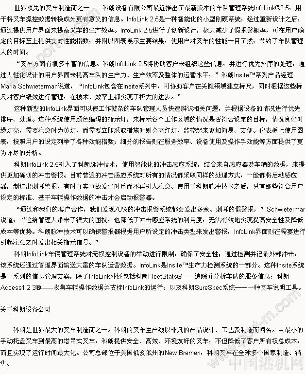 科朗推出新版叉車車隊(duì)管理系統(tǒng)