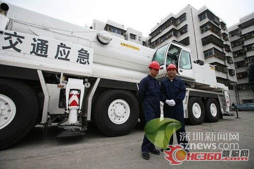 12月15日上午,一臺可以吊起一節(jié)火車車廂的吊車向記者展示了它巨大的吊臂。9時30分,在原福田汽車站停車場內(nèi),全國首臺用于交通應(yīng)急應(yīng)戰(zhàn)的220噸全路面汽車吊正式交付使用。