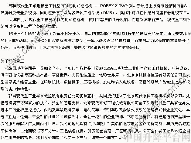 北京現(xiàn)代京城工程機(jī)械有限公司