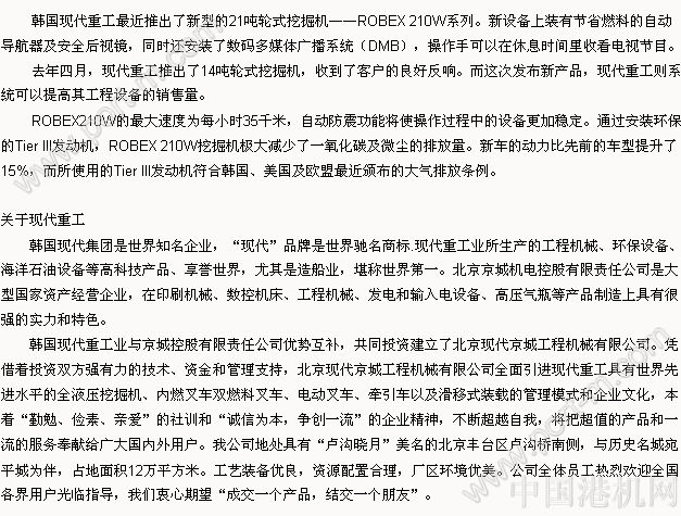 現(xiàn)代重工推出新型輪式挖掘機(jī)