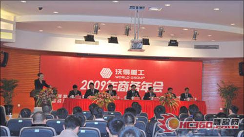 2010年1月16日,沃得重工2009年商務年會暨2010年新征程啟動儀式在江蘇鎮(zhèn)江隆重舉行。沃得集團總裁王偉耀、沃得重工副總謝榮飛、沃得重工銷售總經(jīng)理鐘斌、沃得重工技術(shù)總經(jīng)理牛選平,以及來自全國各地的代理商共200余人出席了本次年會。沃得集團總裁王偉耀總結(jié)了過去一年沃得重工的整體發(fā)展情況,并確定了2010年的戰(zhàn)略發(fā)展目標。同時,對全國代理商在2009年給予的大力支持表示感謝,并對優(yōu)秀代理商進行了表彰。
