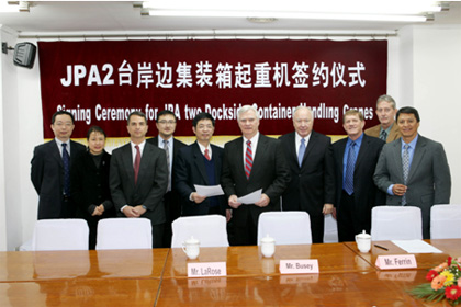 1月20日,我公司與美國(guó)杰克森威爾港務(wù)局簽訂采購(gòu)合同。公司常務(wù)副總裁嚴(yán)云福和杰克森威爾港務(wù)局首席執(zhí)行官M(fèi)r.Ferrin簽署合同。此次...