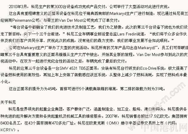 科尼慶祝第3000臺(tái)設(shè)備成功完成交付
