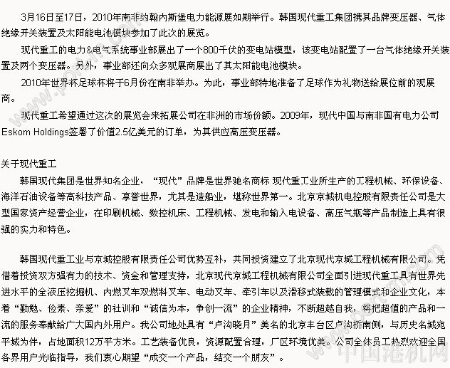 現(xiàn)代亮相2010年南非約翰內(nèi)斯堡電力能源展