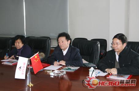 中國(guó)建筑科學(xué)研究院建筑機(jī)械化分院院長(zhǎng)李守林(中)與北方交通高空車事業(yè)部領(lǐng)導(dǎo)進(jìn)行交流