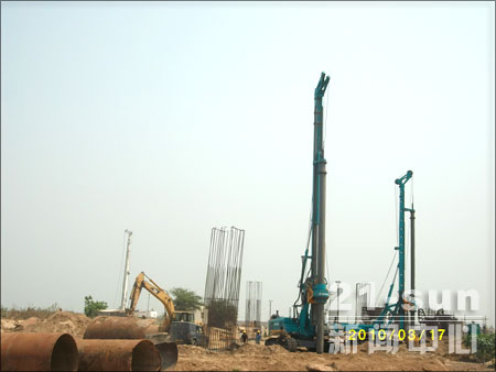 目前,前期抵達(dá)的山河智能SWDM20J、SWDM20E旋挖正在印度TAJAUMUNDRY CITY 的GODAVARI BRIDGE工程中進(jìn)行施工。該工程為連接印度kateru和 kovvuru市的一座跨河大橋,包括引橋部分,總共長(zhǎng)達(dá)15KM,為印度國(guó)家五號(hào)高速公路一部分。該工程地質(zhì)以沙礫為主,位于河床上施工,比較容易塌孔,施工時(shí)需加20M左右的護(hù)筒。旋挖在該處打孔直徑1500MM,打孔深度約50M左右?!吧胶又悄茉O(shè)備先進(jìn),鉆孔快,底盤(pán)穩(wěn),質(zhì)量很好!” 施工方APEX公司的客戶(hù)現(xiàn)場(chǎng)工程師NANVL及操作手KANAKRAJU給予了山河智能高度肯定和評(píng)價(jià)!
