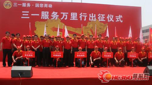 2010年5月11日上午11點18分,在一陣震天的鑼鼓聲中,“三一服務,因您而動”三一服務萬里行出征儀式在三一重機昆山產業(yè)園內隆重舉行。本次出征儀式主要是為即將奔赴全國,為客戶提供巡檢服務的三一重機六支戰(zhàn)區(qū)縱隊送行。三一重機有限公司總經理戴晴華先生、常務副總經理俞宏福先生、三一重機營銷公司總經理向儒安先生等領導出席了儀式。來自全國六大戰(zhàn)區(qū)縱隊的全體將士及代理商服務部長參加了本次活動。