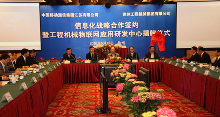 從5月19日中國移動江蘇公司與徐工集團在徐州正式簽訂“信息化戰(zhàn)略合作協(xié)議”儀式上獲悉,徐工集團和江蘇移動公司按照“發(fā)揮優(yōu)勢、兩化融合、長期合作、互利共贏”的原則,達成包括綜合辦公管理、企業(yè)城域網(wǎng)、呼叫中心、工程機械產(chǎn)品數(shù)字管理等在內的八項具體合作項目,同時江蘇移動還將根據(jù)徐工集團業(yè)務需要度身定做個性化信息服務。特別值得一提的是,由雙方共同設立的國內首家工程機械物聯(lián)網(wǎng)應用研發(fā)中心也同步啟用,將開展基于移動通信技術的相關物聯(lián)網(wǎng)技術應用研究,并在徐工集團的設備遠程數(shù)據(jù)采集、診斷處理和企業(yè)生產(chǎn)管理等領域進行應用,打造物聯(lián)網(wǎng)“企企聯(lián)合”研發(fā)新模式,積極發(fā)展和壯大江蘇的物聯(lián)網(wǎng)產(chǎn)業(yè)。