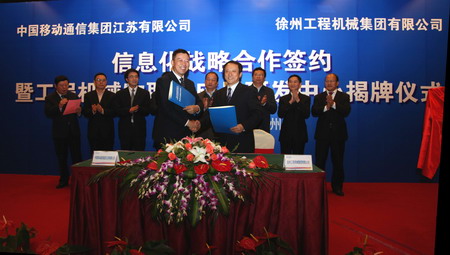 徐工集團是中國工程機械產(chǎn)品品種和系列最齊全、最具競爭力和最具影響力的大型企業(yè)集團,也是中國最大的工程機械生產(chǎn)基地。同樣,中國移動江蘇公司,一直致力于移動通信和社會信息化發(fā)展,目前已向江蘇全省超過30萬家集團客戶提供了量身定制的信息化服務。從通信標準化產(chǎn)品、行業(yè)應用解決方案到個性化解決方案的全業(yè)務產(chǎn)品體系已基本建立。前期,雙方已在企業(yè)數(shù)據(jù)外包、工程機械數(shù)據(jù)遠程采集、集團客戶服務系統(tǒng)等領域實現(xiàn)了深度合作,切實提升了徐工集團信息化創(chuàng)新能力。