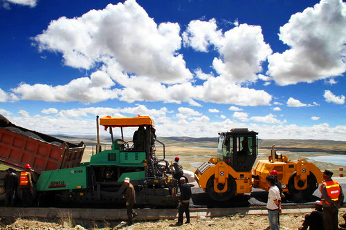 徐工成套路面機(jī)械設(shè)備在海拔4500米處施工