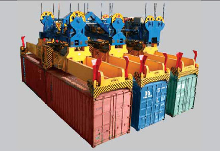 吊三只40英尺箱岸橋是zpmc在雙40英尺箱岸橋的基礎(chǔ)上開發(fā)的又一集裝箱起重機(jī)高效產(chǎn)品??梢赃M(jìn)行單箱、雙箱和三箱作業(yè)。這時(shí),不工作的吊具,可升到頂部鎖牢。