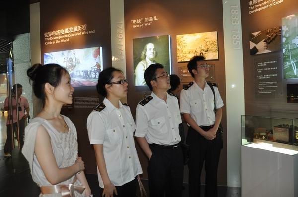 國際業(yè)務部總監(jiān)陳靜陪同客人參觀電纜博物館