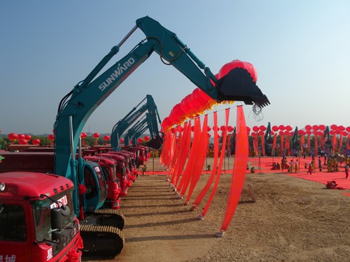 大會現(xiàn)場,山河智能10余臺中大型挖掘機(jī)整裝待發(fā)、氣勢雄偉,成為一道靚麗的風(fēng)景線。山河智能挖掘機(jī)在省內(nèi)諸多重大工程項(xiàng)目中久經(jīng)考驗(yàn),繼參與京港澳高速、瀏醴大瀏高速、長沙地鐵等省內(nèi)重點(diǎn)工程后,將為長沙本地大型工程再建功勛。