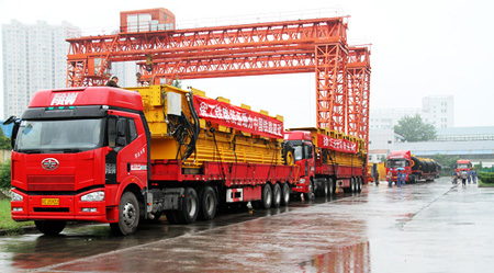 8月25日,九臺重型汽車滿載著TY900運梁車冒著蒙蒙細雨駛出徐工鐵裝公司大門,奔赴新疆施工現(xiàn)場。此次TY900運梁車發(fā)往新疆是該公司首套提、架、運設備之一,此后,還將有提梁機、架橋機陸續(xù)發(fā)往新疆,為西部鐵路建設再立新功。