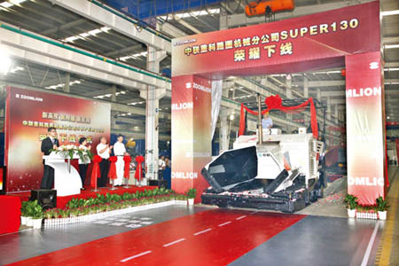 8月26日,中聯(lián)重科路面機(jī)械公司SUPER130超級(jí)攤鋪機(jī)在望城工業(yè)園舉行盛大下線(xiàn)儀式。路面機(jī)械公司總經(jīng)理龔敏發(fā)表了《新高度 新跨越 新征程》的主題講話(huà),湖南省政協(xié)副主席龍國(guó)鍵、湖南省瀝青路面專(zhuān)家吳善周共同為SUPER130超級(jí)攤鋪機(jī)下線(xiàn)剪彩。SUPER130超級(jí)攤鋪機(jī)的成功下線(xiàn),標(biāo)志著國(guó)產(chǎn)攤鋪機(jī)在品質(zhì)和功能上實(shí)現(xiàn)了對(duì)國(guó)外品牌攤鋪機(jī)的歷史性超越。